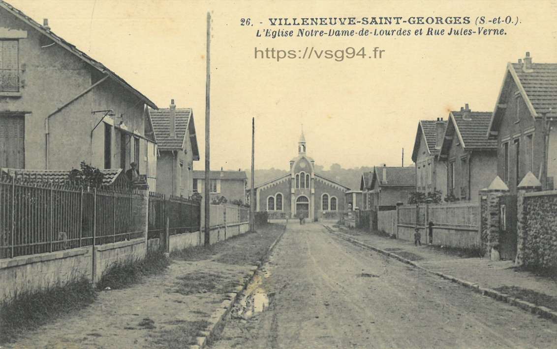 L'église Notre Dame de Lourdes depuis la rue Jules Verne